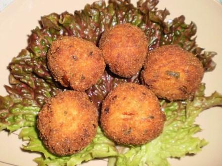 Devido à consistência da massa, colocar umas 4 colheres rasas de farinha para depois conseguir moldar as bolinhas, depois passar no pão ralado e fritar em óleo.