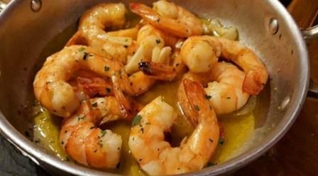 Adicione os camarões, tempere com um pouco de vinho branco, sal e pimenta.