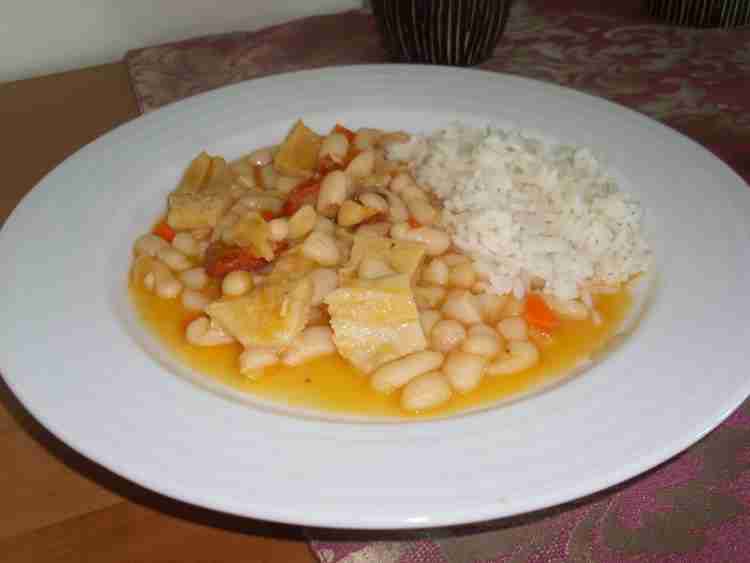 Coza também o feijão branco, na panela de presão também com água e sal, por 10 minutos.